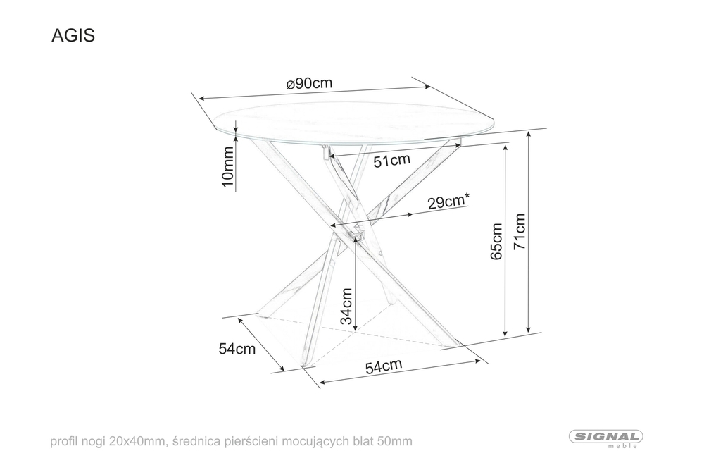 The tabletop is made of high-quality tempered glass. Therefore, it is resistant to scratches and everyday use. In addition, the smooth surface is easy to clean. Because the glass is transparent, it visually enlarges the space. Consequently, the AGIS round table is perfect for both small and spacious rooms.