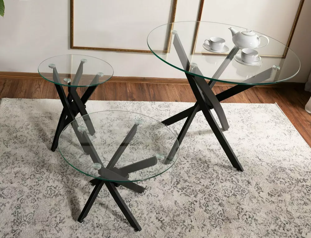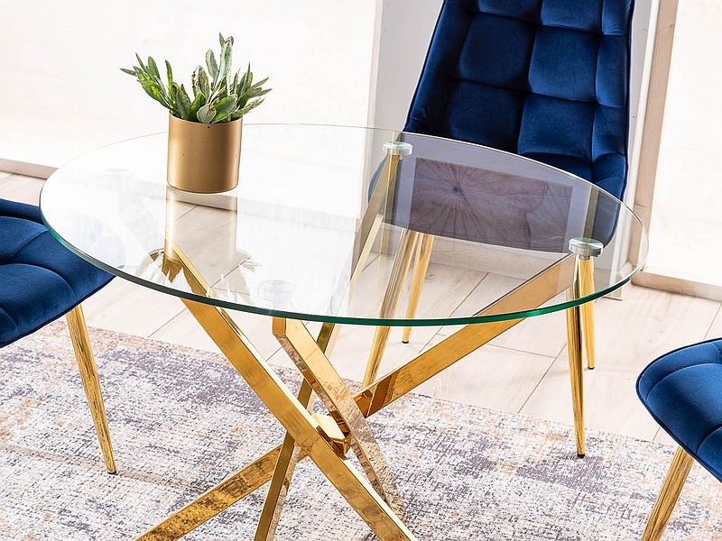 AGIS Round Table – Tempered Glass Top (Gold / Silver / Black Frame)