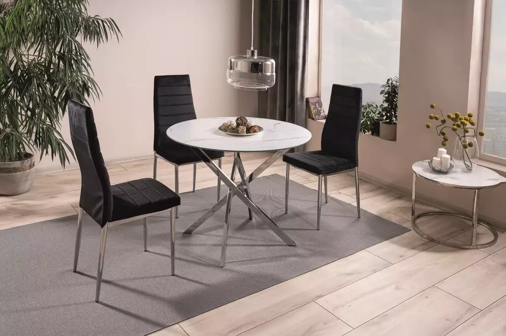 The round shape encourages conversation and comfort. Furthermore, it softens the overall look of the room. Whether placed in a dining room, living area, or stylish apartment, the AGIS table enhances the space with lightness and elegance.