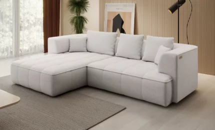 The Albio corner sofa combines elegant design with functional solutions that enhance everyday comfort. This model features an electrically extendable seat, allowing you to adjust the seating space to your individual needs. The wide ottoman provides enough room for two people to relax comfortably, while the decorative cushions offer soft support during rest.