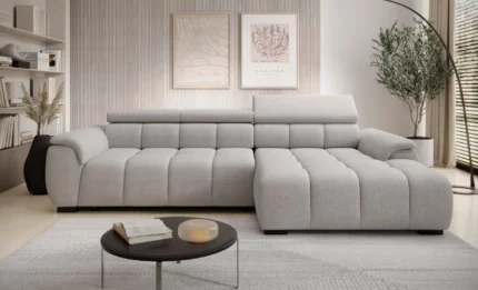 The ALVIN MINI corner sofa bed is a modern and compact solution designed for smaller living spaces. It combines comfort, functionality, and contemporary design. Therefore, it is perfect for apartments, studios, and cozy living rooms. At the same time, it offers a practical sleeping option for guests.