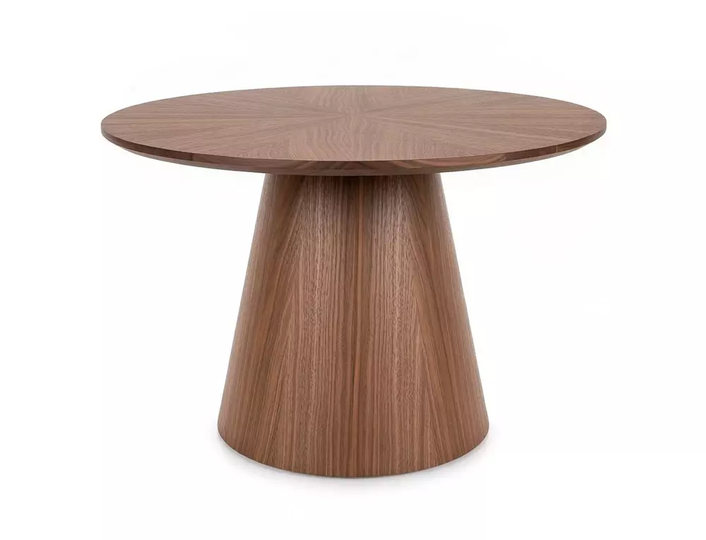 The deep walnut color highlights the natural grain pattern, creating a refined and luxurious look while maintaining a minimalist aesthetic. Its solid construction ensures durability and stability, making it ideal for everyday use in modern and classic interiors alike.