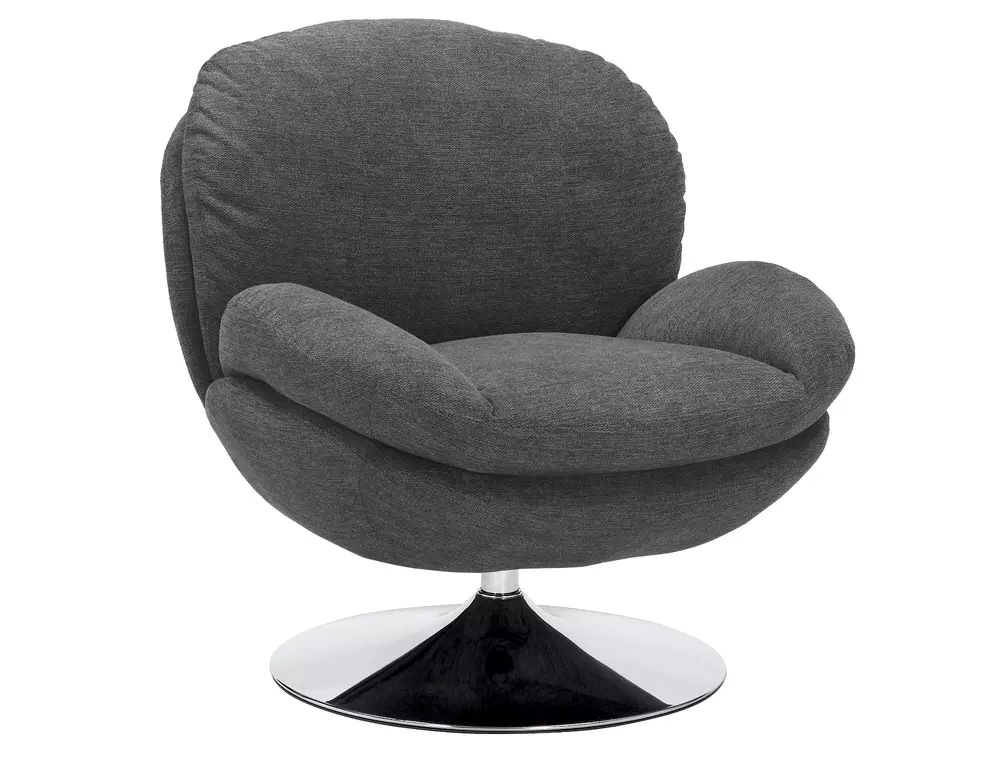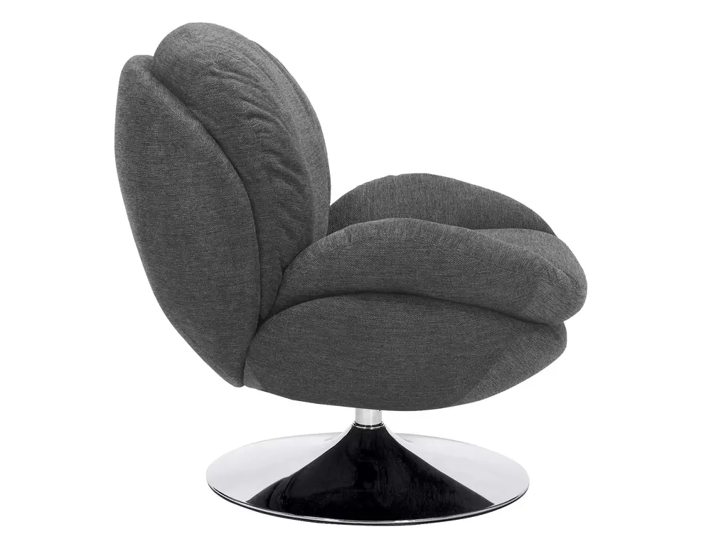 Brigitte Armchair is a modern, elegant swivel chair designed to combine comfort with a sleek contemporary style. Upholstered in durable Brego fabric and supported by a sturdy metal frame with a chrome finish, it brings both stability and sophistication to any interior.