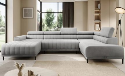 CALDO XL – a corner sofa distinguished by vertical stitching. Adjustable headrests allow you to tailor your relaxation to the user’s individual needs. Thanks to the unique unfolding system, this corner sofa easily turns into a bed with a sleeping area of 140 × 270 cm.