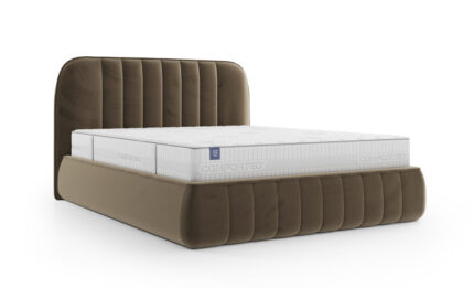 The Calira bed is a unique model that impresses with its harmonious, rounded shapes and subtle elegance. Its low, floor-level construction reflects contemporary interior design trends, enhancing the cozy and comfortable character of any bedroom. Vertical stitching on the front frame perfectly complements the rhythmic sections of the headboard, creating a cohesive and refined composition. These delicate details add depth and visual structure, giving the bed a timeless appeal.