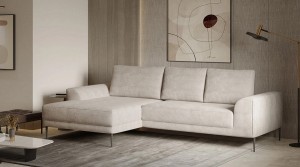 Extremely comfortable sofa with a sleeping function and a container for bedding. It was designed for small, youth rooms, where, apart from a place to relax, a comfortable bedroom space is needed. Thanks to the sleeping function, it is perfect for both day and night rest. An extra set of bedding can be stored in a large, hidden container. The sofa has been placed on high, black legs that add lightness to it.