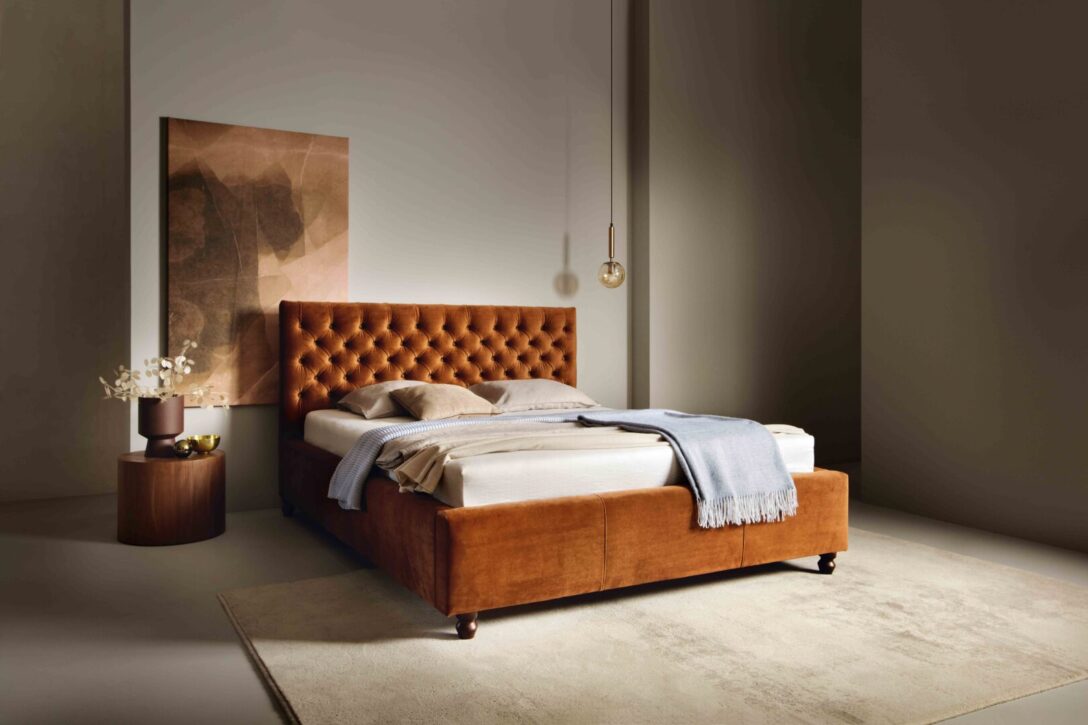 The Chester upholstered bed captivates with its effortless elegance and classic style. Highlighted by a beautifully deeply tufted headboard. The handcrafted, dense tufting with carefully arranged fabric folds gives the bed a truly distinctive and luxurious character.