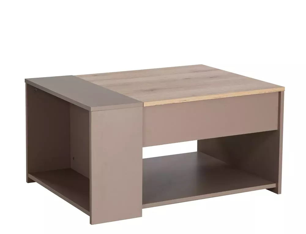 The tabletop lifts smoothly up to 56 cm, creating a comfortable surface for working, dining, or using a laptop. Beneath the lift-top, there is a practical hidden storage compartment, perfect for keeping magazines, remote controls, and other essentials neatly organized.