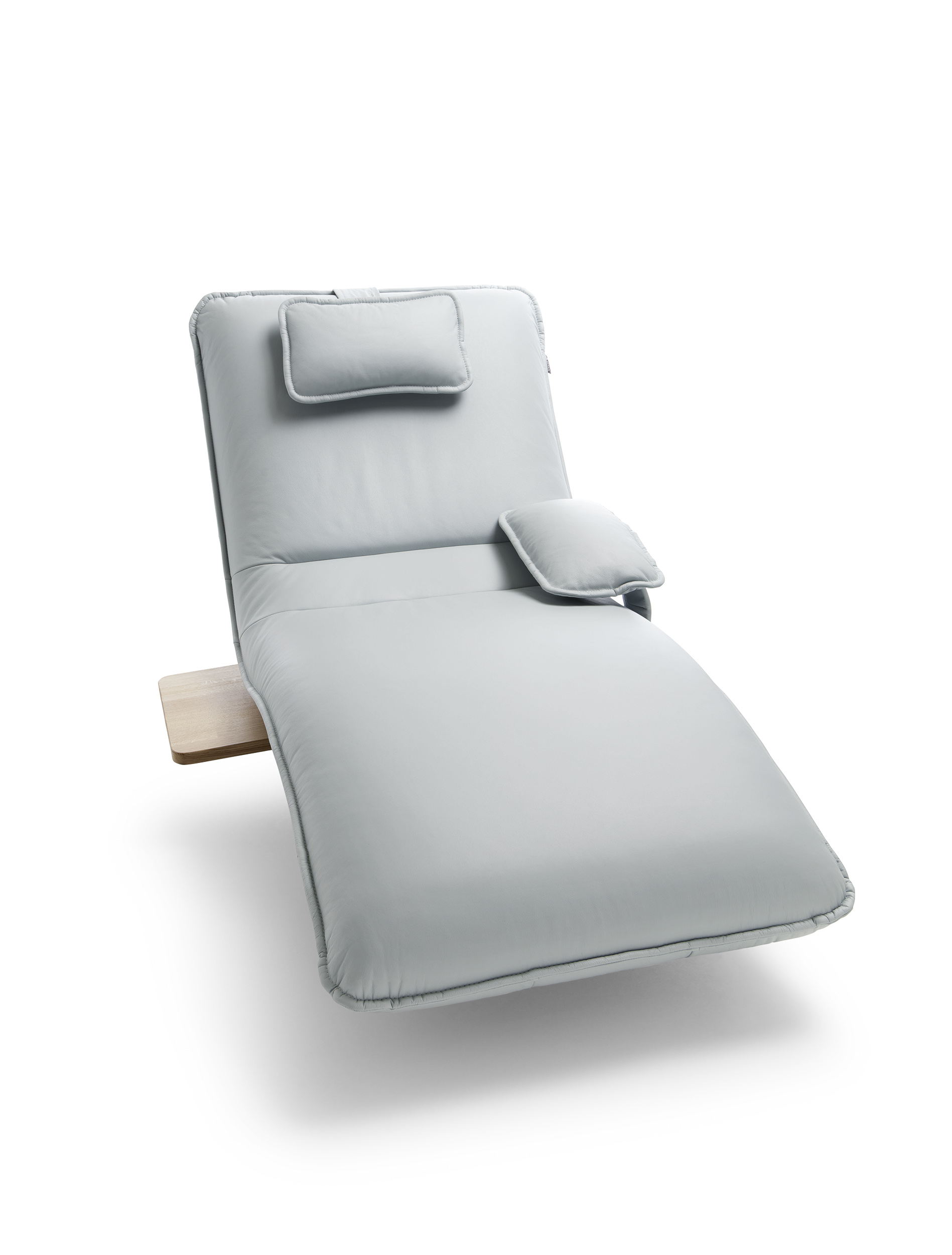Upholstered in 100% genuine natural leather, the EVO chaise offers a soft, breathable surface that adapts to the body and ages beautifully over time, developing a unique patina. The carefully contoured shape provides excellent support for relaxation, reading, or resting.