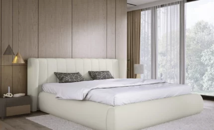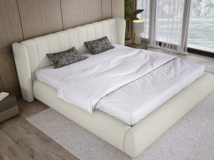 The FLORENCE bed frame stands out with its elegant and modern design. Its distinctive rounded headboard with vertical stitching adds a refined decorative touch while creating a soft and sophisticated look. As a result, the bed becomes a stylish centerpiece for any bedroom.