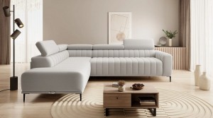 Gandi is an extraordinarily functional and comfortable corner sofa. The Italian folding system lets you easily turn it into a bed. Delicate pulls and expressive stitching bring a striking variety. Comfortable seat and backrest with adjustable headrest allow you to adjust the comfort of your rest to your individual needs. The metal legs enhance the luxuriousness and modern character.