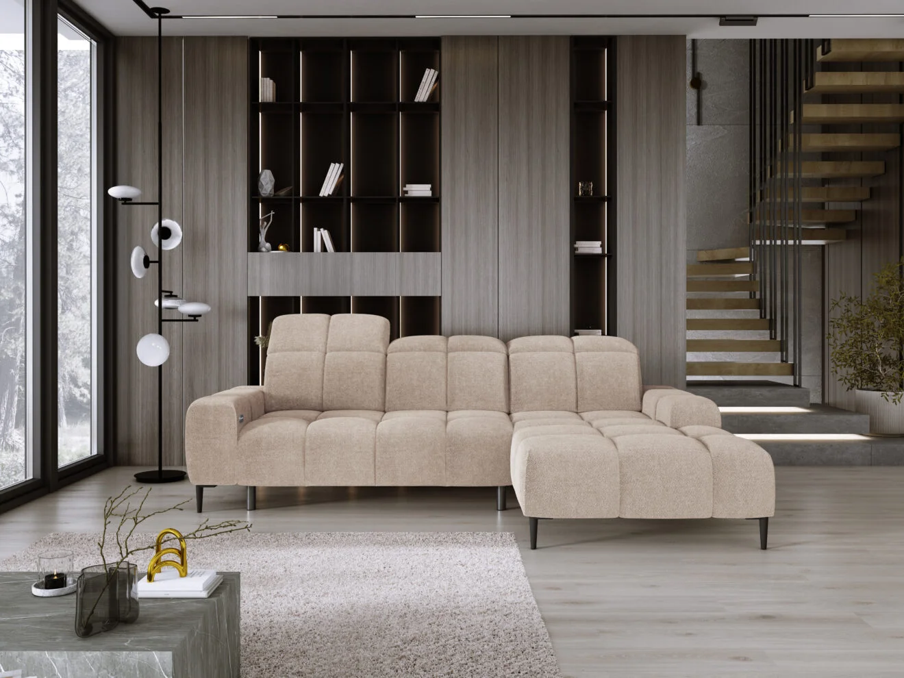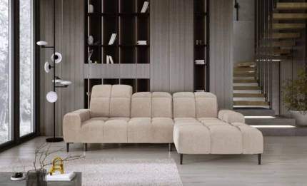 The GIOVANNI MINI corner sofa is a sleek and modern solution designed for smaller living spaces. It combines contemporary style with practical features, making it perfect for everyday relaxation. At the same time, it offers maximum comfort thanks to its smart design.