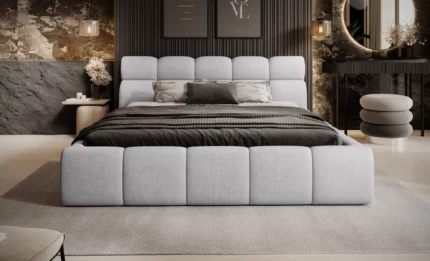 GIULIA – a model that is impossible to overlook. It impresses with its elegant and modern design, making it the focal point of any bedroom. This extraordinary bed features numerous deep stitches and tufting, giving it a stylish look. The GIULIA bed also includes a practical storage compartment for bedding, providing extra space for storage. Its unique shape catches the eye, adding a distinctive character to the room.