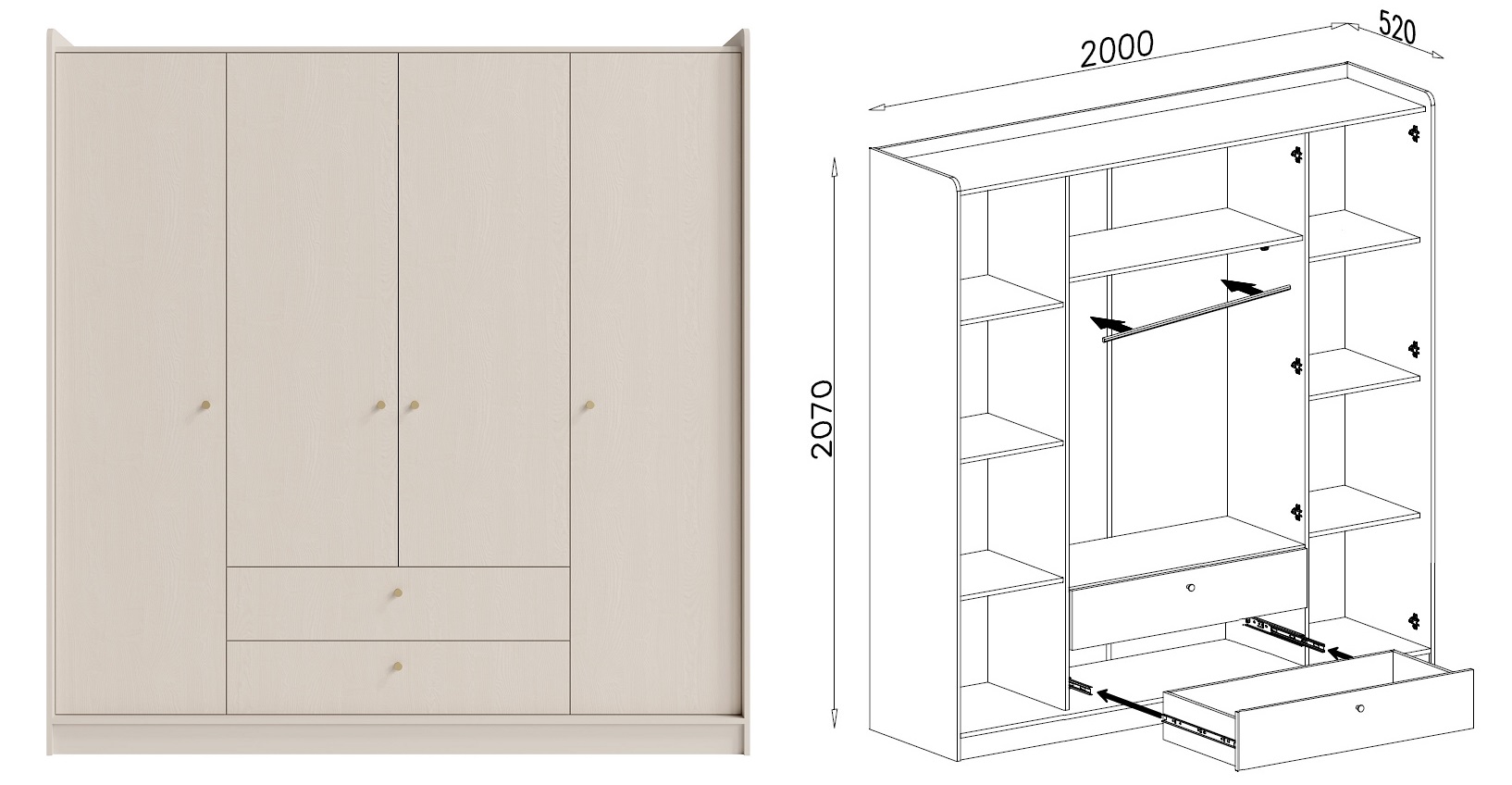 Grande Cashmere Wardrobe – Elegant Bedroom Storage with Natural Look