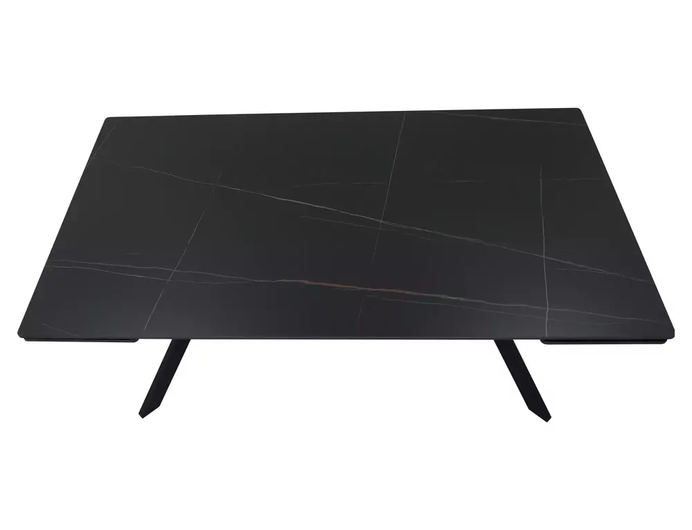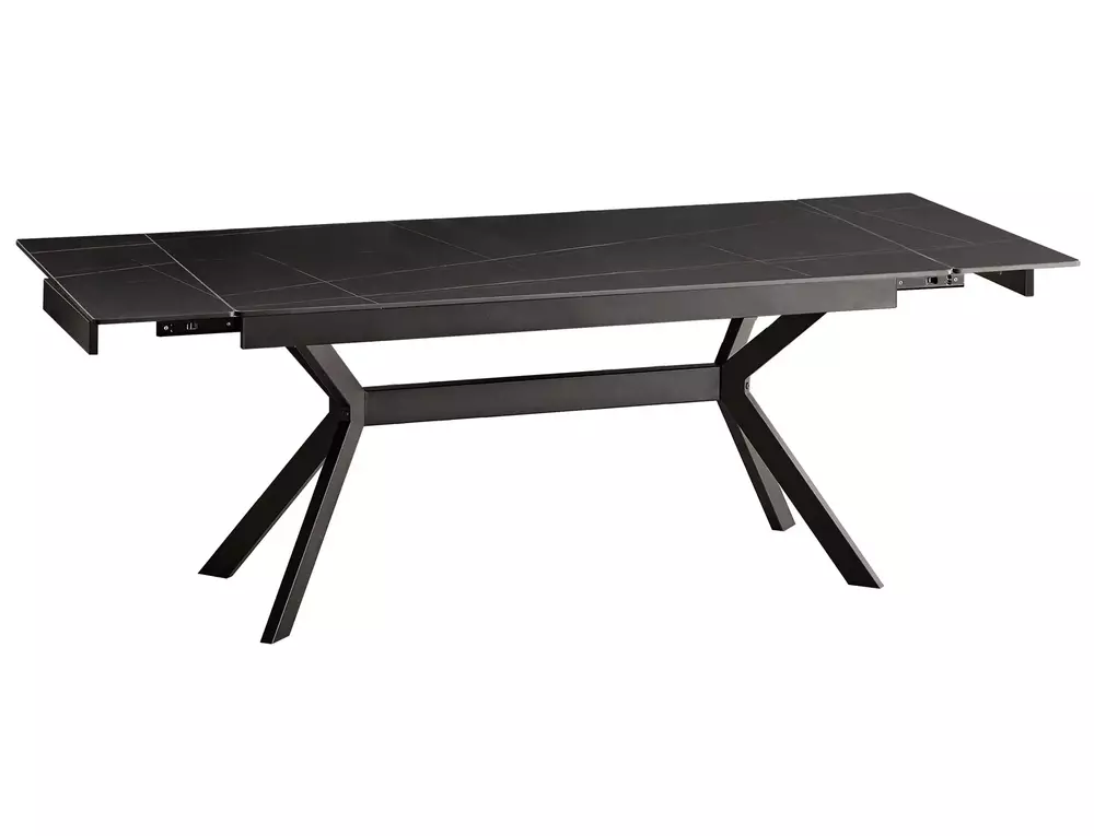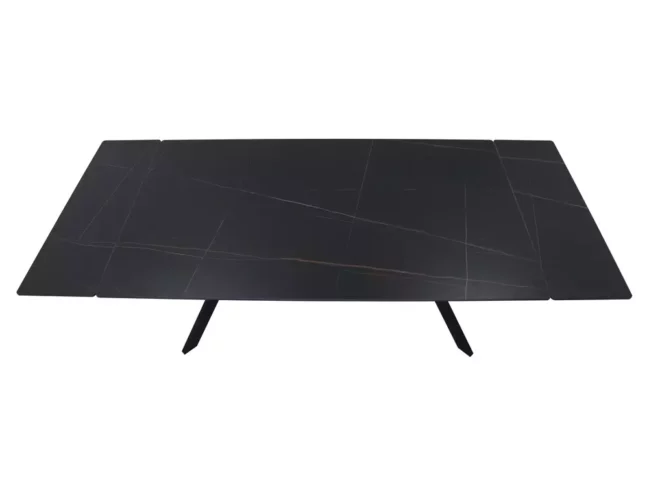 Description: Extendable table, top: graphic glass + ceramics, built-in: metal, color: matt black / matt black. |