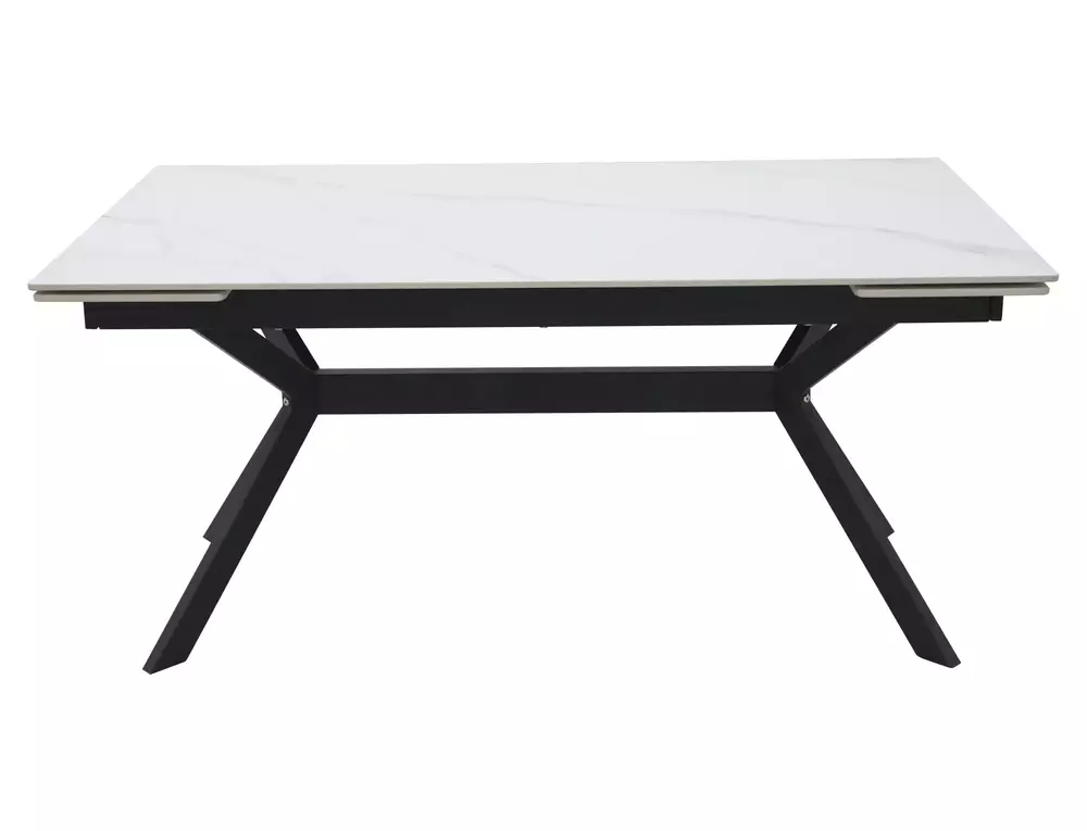 | Description: Extendable table, top: graphic glass + ceramics, built-in: metal, color: matt white / matt black. |