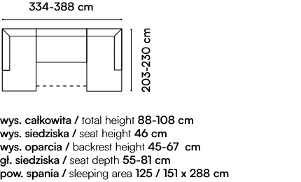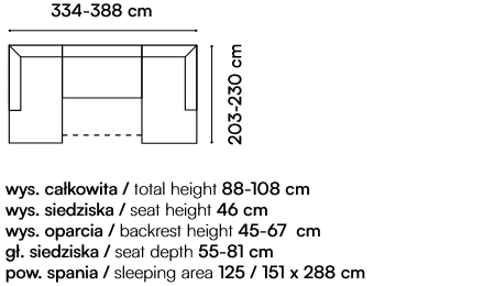- corner sofa with manually adjustable backrest (front/back)