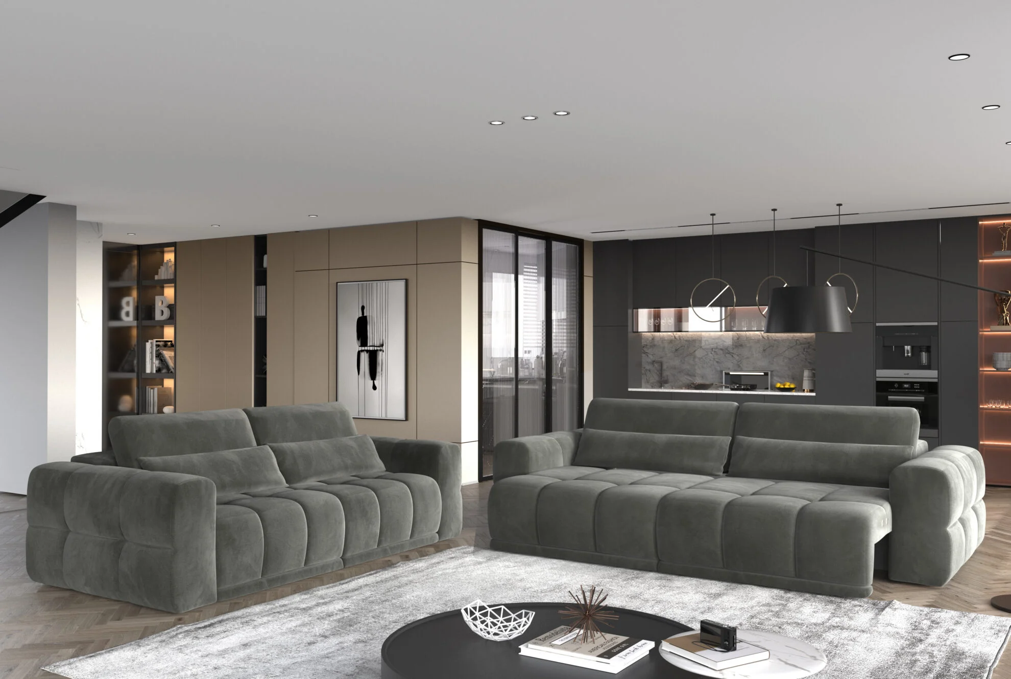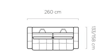 Both sofas feature an electric seat extension, allowing you to easily adjust the seating depth. The 3-seater sofa provides a sleeping surface of 230 × 117 cm, while the 2-seater offers 200 × 117 cm. This ensures comfortable lounging and a convenient sleeping option for guests.