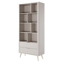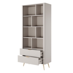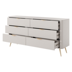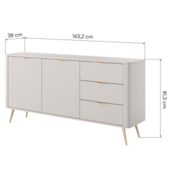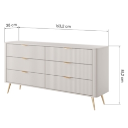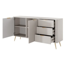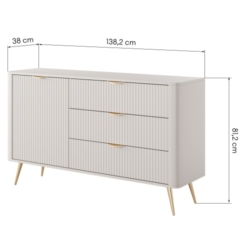 The Lante set will allow you to create an arrangement full of harmony and subtlety, and at the same time fashionable and chic. Warm beige brings peace and balance to the interior, matching perfectly with golden accents, which makes the room cozy and elegant at the same time. Rounded edges and grooved fronts add modernity and originality to the furniture. Lante is a set created for those who love modern forms and subtle, glamorous colors.