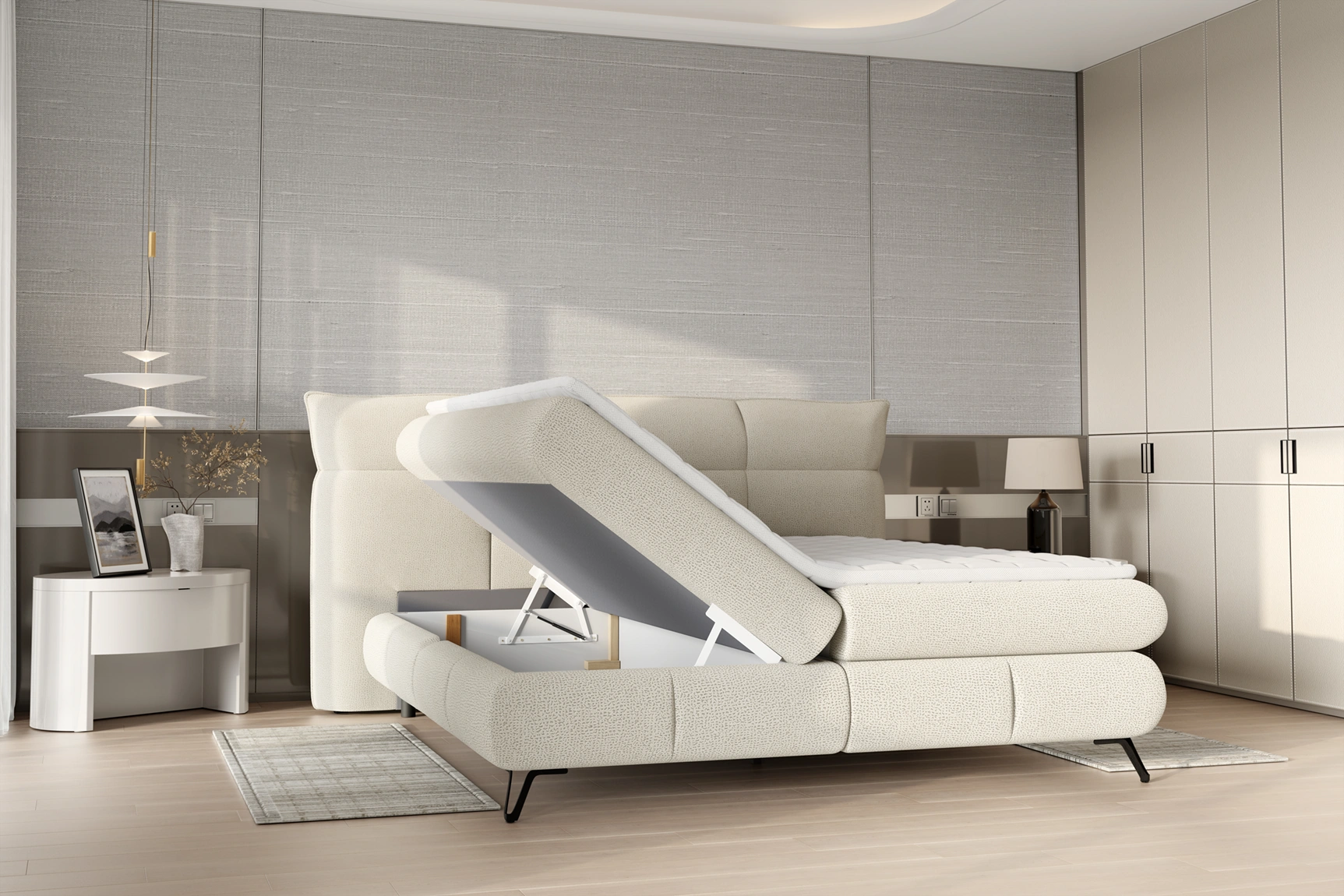 A simple, softly shaped headboard creates a cosy backdrop for your relaxation space, adding warmth and comfort to any bedroom. Designed with practicality in mind, Lena also features a spacious built-in storage compartment – perfect for keeping bedding and essentials neatly organised.