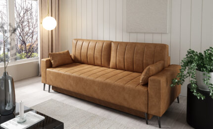 Thanks to its sleeping function, it easily transforms into a comfortable bed – ideal for overnight guests or for daily use as a sleeper sofa.