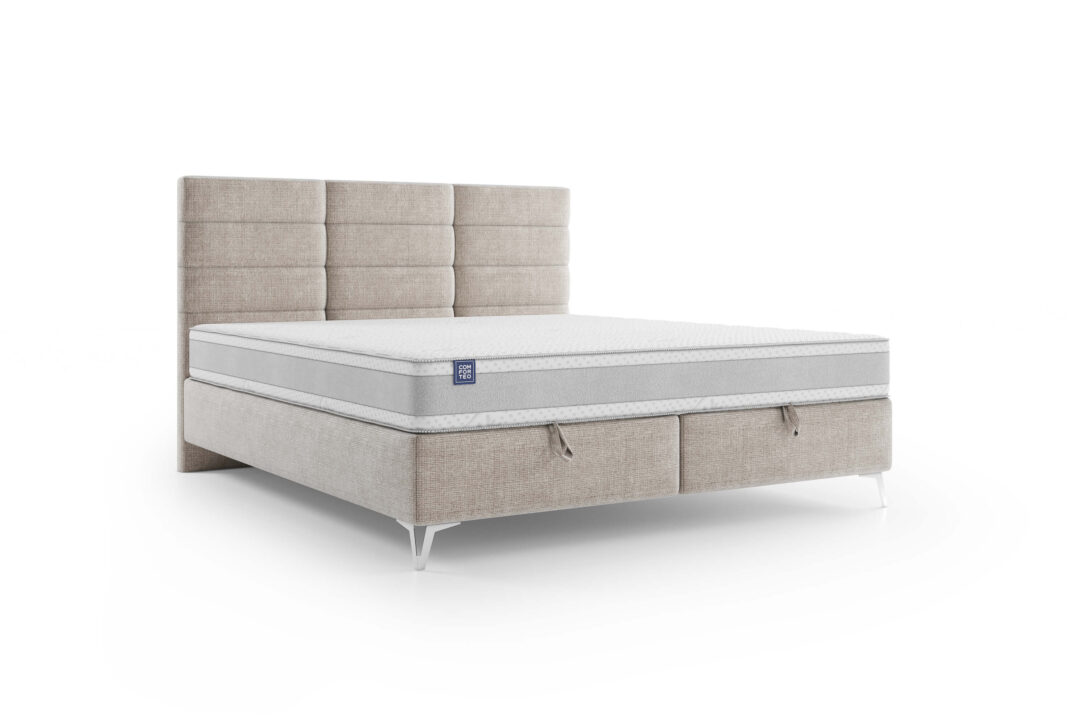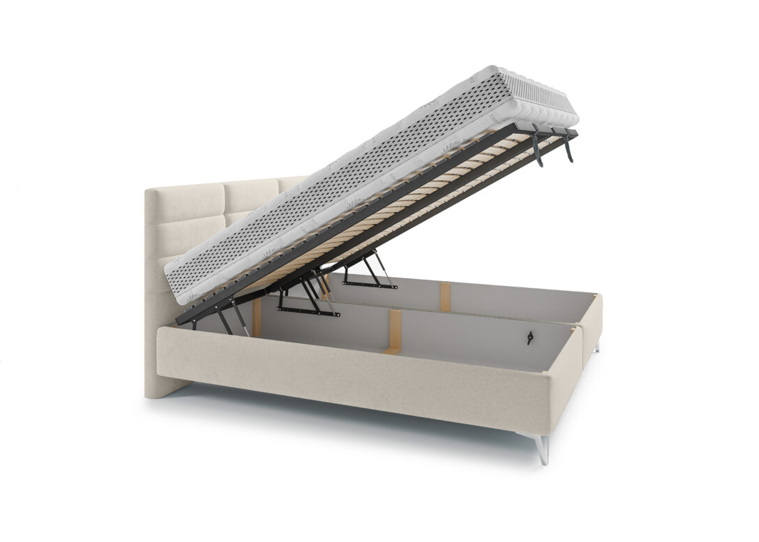 Chrome legs measuring 10 cm not only create a light, airy look. Also make cleaning underneath easy — even with a robot vacuum cleaner. Thanks to this thoughtful design, Logan combines functionality, contemporary aesthetics, and space-saving efficiency, making it an ideal choice for modern bedrooms.