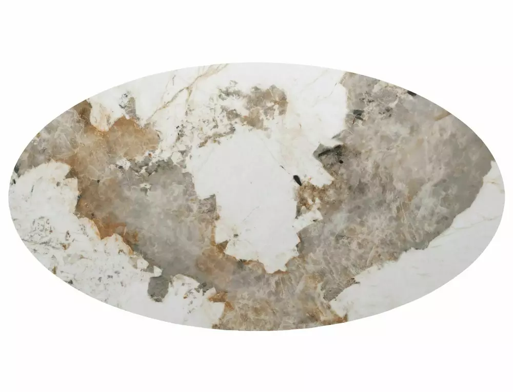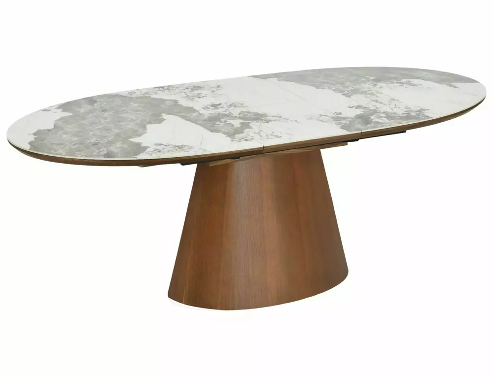 The tabletop is made of solid MDF and finished with high-quality Pandoro ceramic, offering exceptional resistance to scratches, heat, and daily wear. The ceramic surface provides a refined, stone-inspired look while ensuring long-lasting durability. Base is crafted from MDF with a natural veneer finish in a rich walnut tone. The elegant contrast between white high gloss and walnut creates a timeless and luxurious aesthetic, perfect for contemporary and sophisticated interiors.