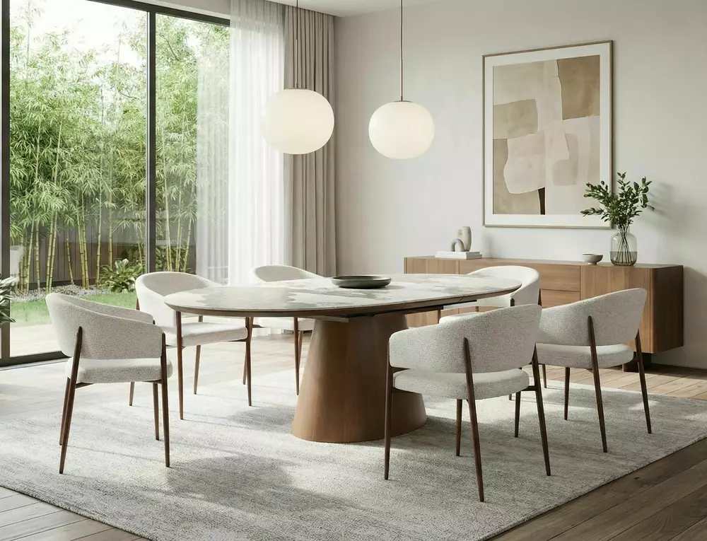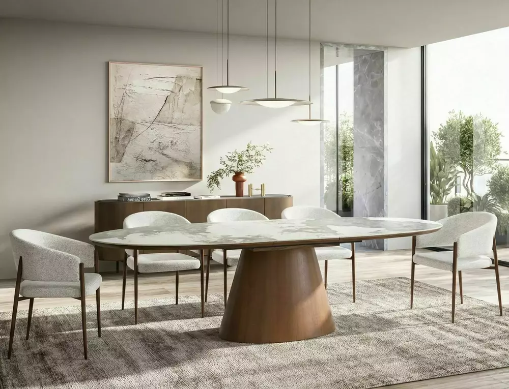 The MAROCCO table is the perfect balance of style and functionality. Its extendable design offers flexibility for everyday use and larger gatherings, while the premium ceramic top ensures durability and effortless maintenance. A refined centerpiece that elevates any modern dining room.