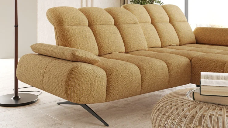 The Moreno corner sofa features adjustable seat depth thanks to sliding backrests, allowing you to easily adapt the seating position to your preferences. Whether you want a more upright seating position or a deeper, lounge-style relaxation, Moreno adjusts perfectly to your needs.