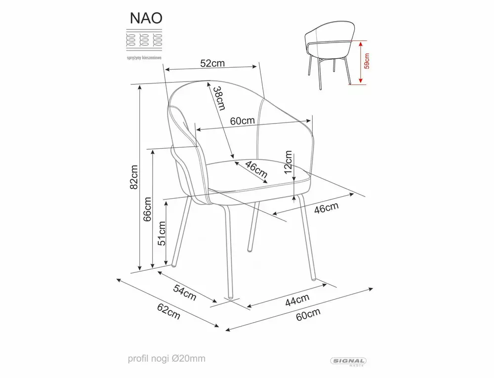Designed for maximum comfort, the seats are equipped with pocket springs, delivering ergonomic support and a soft, responsive feel while sitting. The NAO chairs are available in beige, dark beige, and cappuccino, making it easy to choose the perfect color to match your interior.