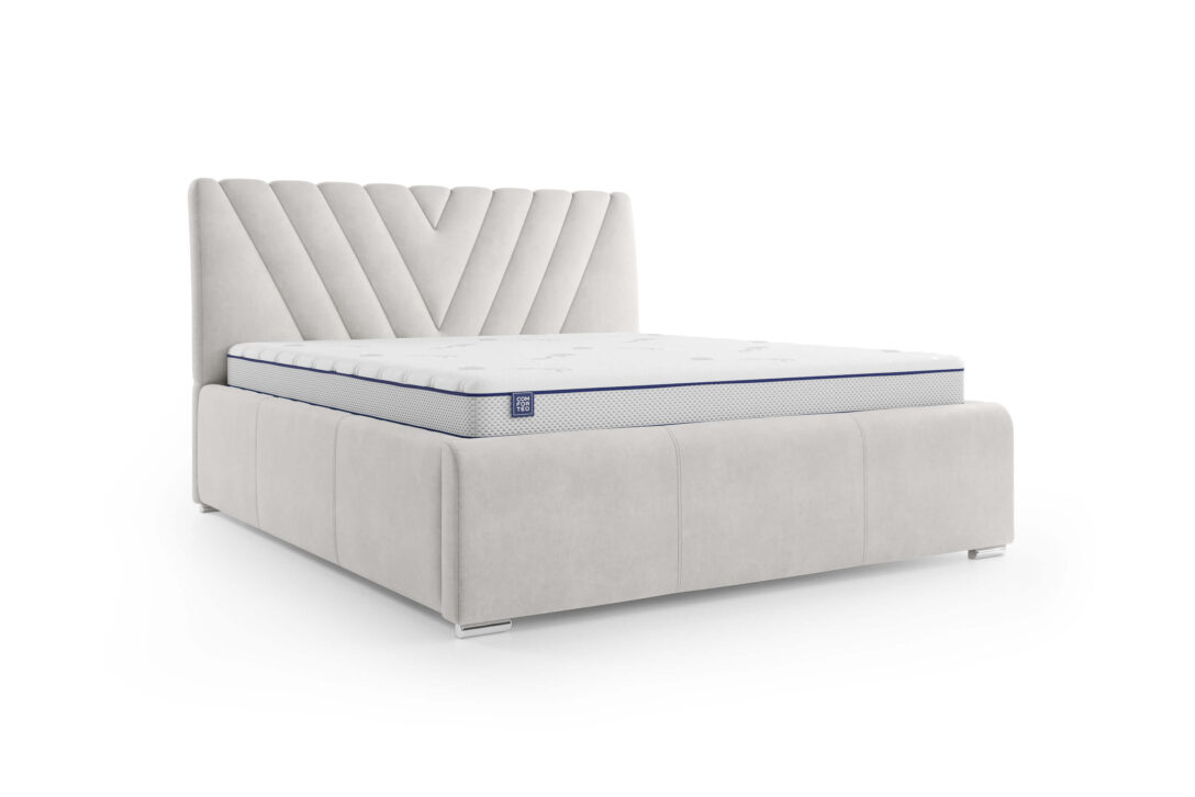 The Nevada upholstered bed impresses with its generous dimensions, providing ample sleeping space and the potential for a custom storage box to meet individual needs. Its high sleeping surface not only enhances comfort but also makes getting in and out of bed easier — a feature particularly appreciated by older users.