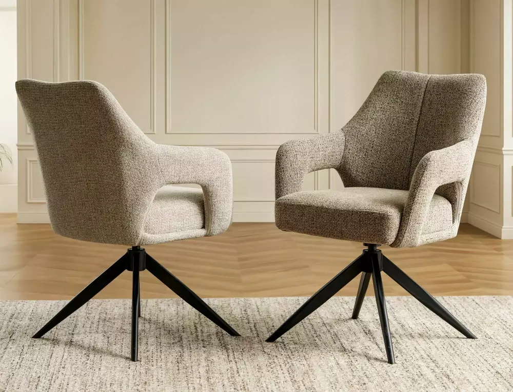 A key feature of the OLSEN chairs is the 360° swivel seat with auto-return, allowing effortless rotation in all directions while returning smoothly to its original position. This feature adds ergonomic comfort and practical convenience for daily use.
