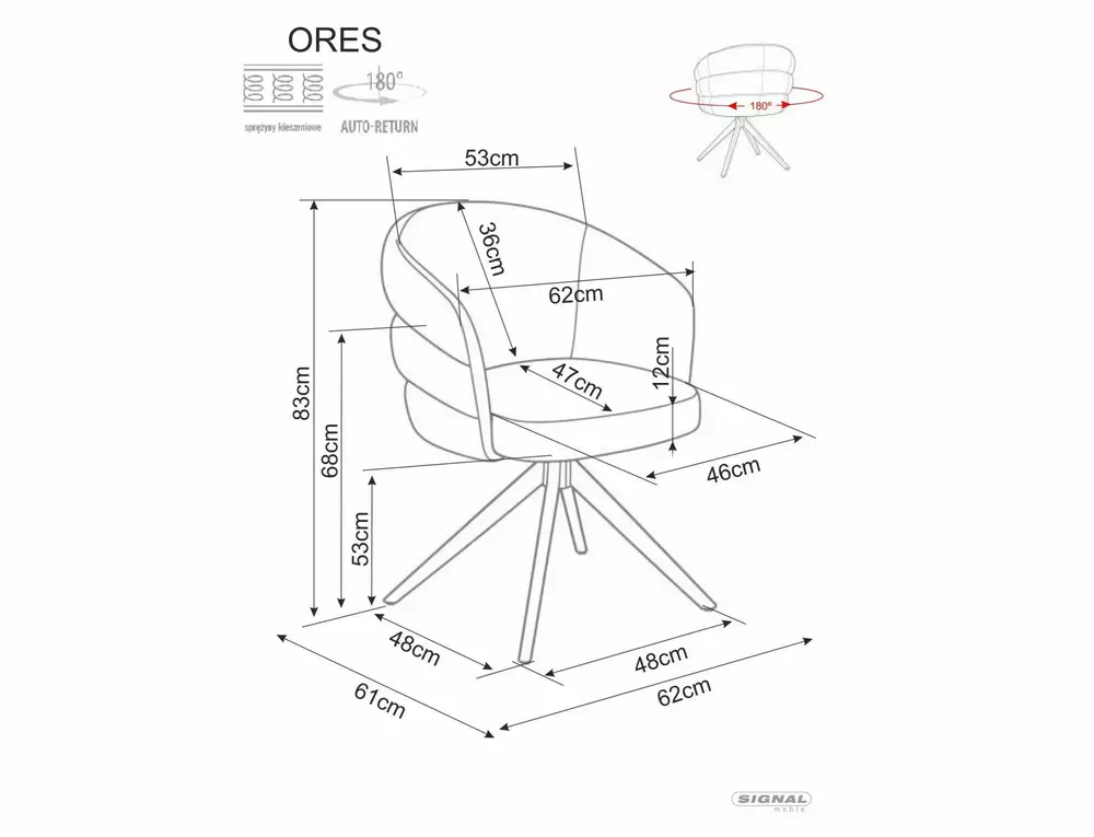 Equipped with an auto-return 180° swivel seat, the chair rotates smoothly and automatically returns to its original position, delivering ergonomic comfort and convenience. The ORES chairs are available in grey, beige, and light beige, allowing you to select the perfect color to complement your interior design.