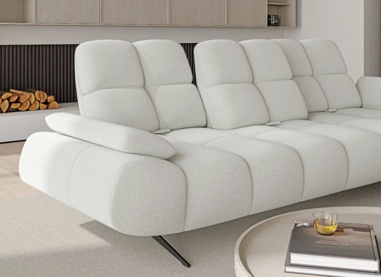 The movable armrest adds another level of functionality. It provides additional support and makes relaxing even more comfortable. As a result, the sofa adapts perfectly to different situations, from casual lounging to social gatherings.