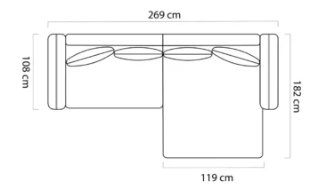 One of the key features of this model is its DL-style sleeping function, providing a sleeping area of 230 × 148/134 cm, ideal for overnight guests. Additionally, the sofa includes a practical storage compartment measuring 14 × 117 × 62 cm, perfect for storing bedding, pillows, or blankets.