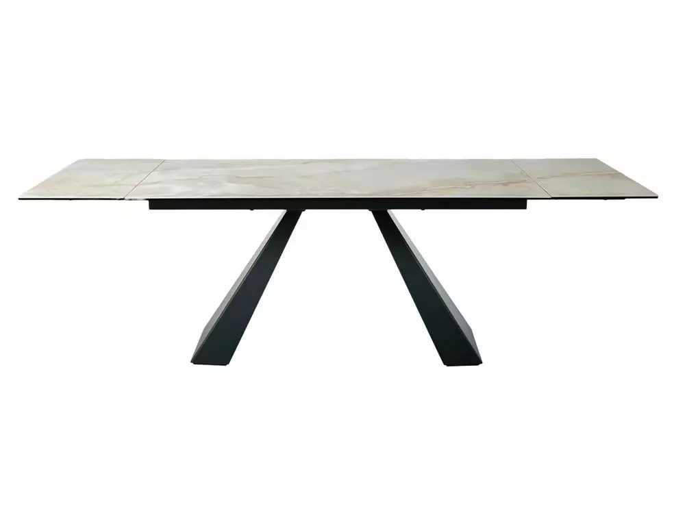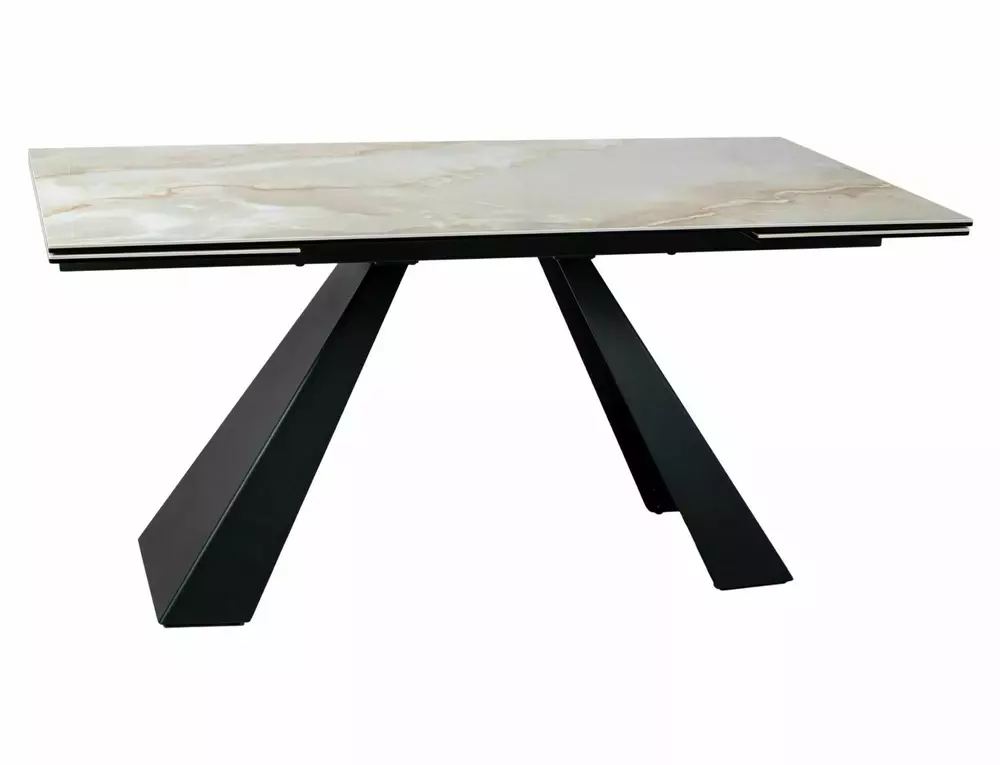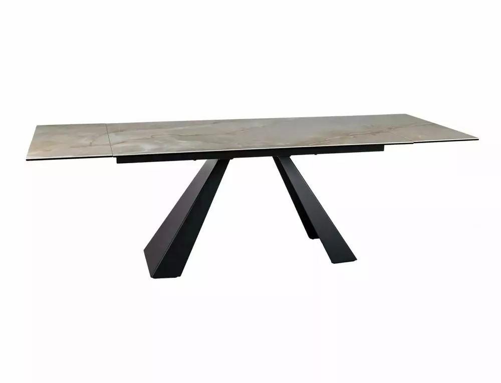 The SALVADORE extendable dining table is a bold combination of elegance, innovation, and functionality. Designed for modern interiors, it features a premium tempered glass and Onice Oro ceramic tabletop supported by a sleek metal base, creating a sophisticated centerpiece for any dining room.