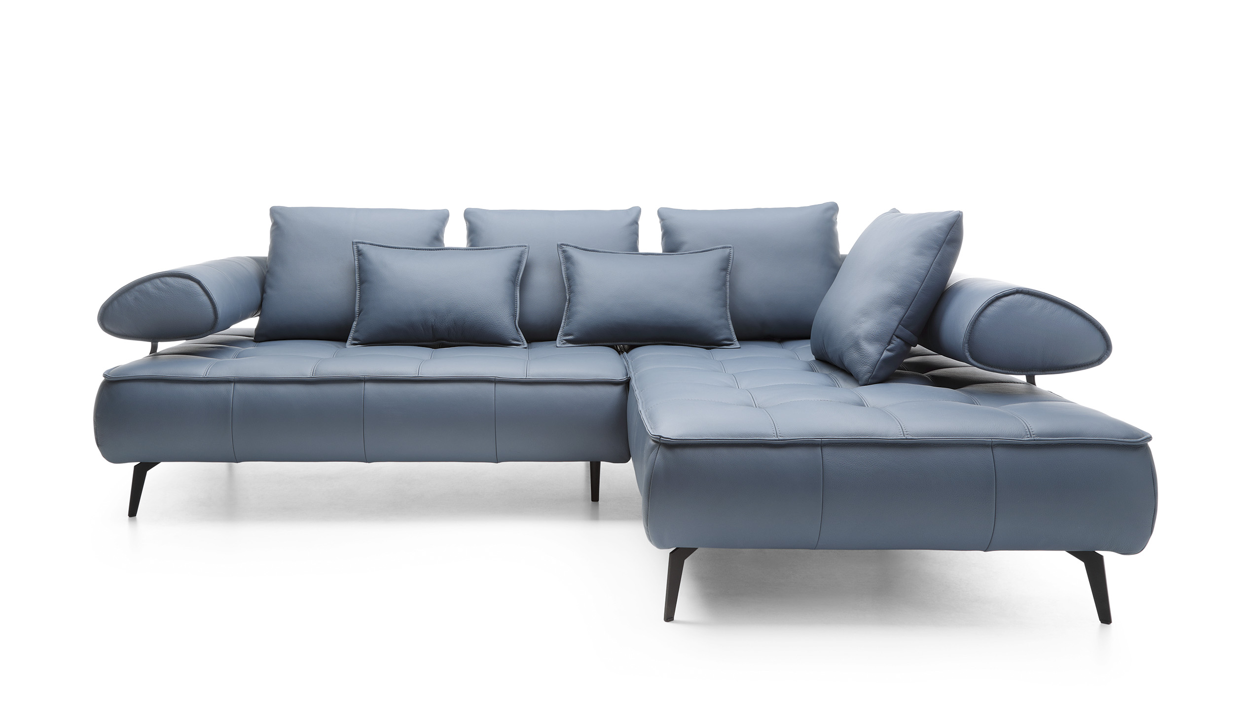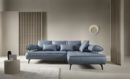 The Seledo collection is a functional corner system, dedicated to all those who appreciate modern design. Electrically adjustable seat slide and a set of soft, loose backrest cushions allow you to assume the most comfortable position while relaxing. The furniture is placed on high, black metal legs, which increase the aesthetic and functional values.