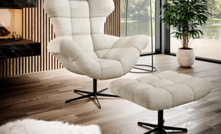 The designer form of the furniture with geometric stitching makes an amazing impression. Placed on a swivel base and additionally equipped with a rocking function, it ensures perfect relaxation. The armchair will work well in the living room, bedroom, office and youth room. Depending on the type and colour of the fabric, SENSI takes on a different character. The collection is complemented by a footstool, which together with the armchair constitute a harmonious duo.