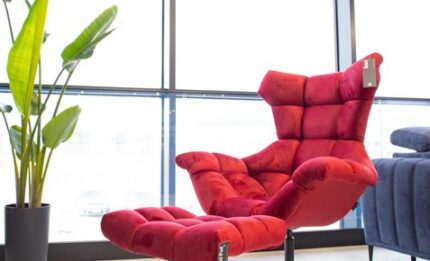 The SENSI armchair was created for everyone who is looking for a personal relaxation zone. Wide seat, perfectly profiled and high backrest embrace the user, giving him a sense of safe and comfortable rest. The designer form of the furniture with geometric stitching makes an amazing impression. Placed on a swivel base and additionally equipped with a rocking function, it ensures perfect relaxation. The armchair will work well in the living room, bedroom, office and youth room. Depending on the type and colour of the fabric, SENSI takes on a different character. The collection is complemented by a footstool, which together with the armchair constitute a harmonious duo. *Any material colour combination available on customer request. Call in store for all different material colours & structures. Additional fee may occur Over 500 different colours options!
