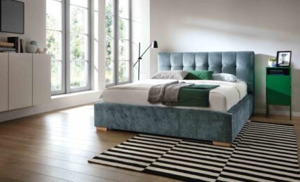 Sierra upholstered bed perfectly combines classic elegance with modern design. Its striking headboard adds a cozy and inviting character to any bedroom. The headboard features a visually appealing, “soft” mosaic of regular stitching and tufting, creating a unique and sophisticated pattern that highlights the model’s distinctiveness.