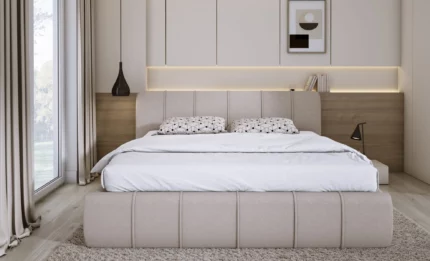 A defining feature of the Soul bed is its simple, modern silhouette complemented by decorative piping on both the headboard and bed frame. Thanks to this detail, the bed gains a refined accent without overwhelming the overall design. Additionally, the soft upholstered finish enhances both comfort and visual appeal, making it suitable for modern, minimalist, and contemporary interiors.