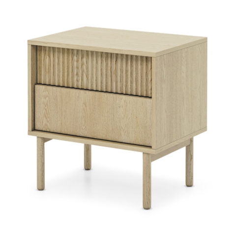 The collection features simple, geometric shapes enhanced by elegant grooved MDF fronts, which add texture and depth while maintaining a clean, contemporary look. Smooth fronts are slightly moved forward, creating a layered visual effect that gives the furniture a distinctive and stylish character.