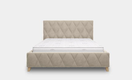 Trivio upholstered bed stands out with its unique and elegant character, highlighted by distinctive diamond-pattern stitching on the headboard, front panel, and side rails. The consistent, carefully crafted stitching across the entire structure gives the bed a soft, cohesive appearance and enhances its modern, refined design.