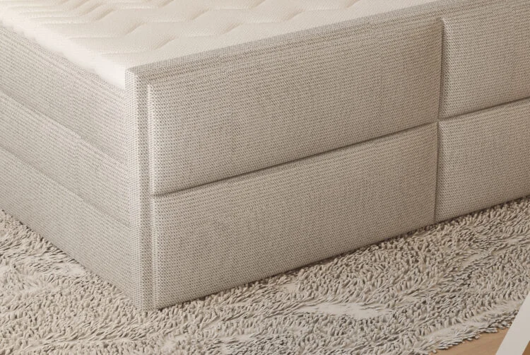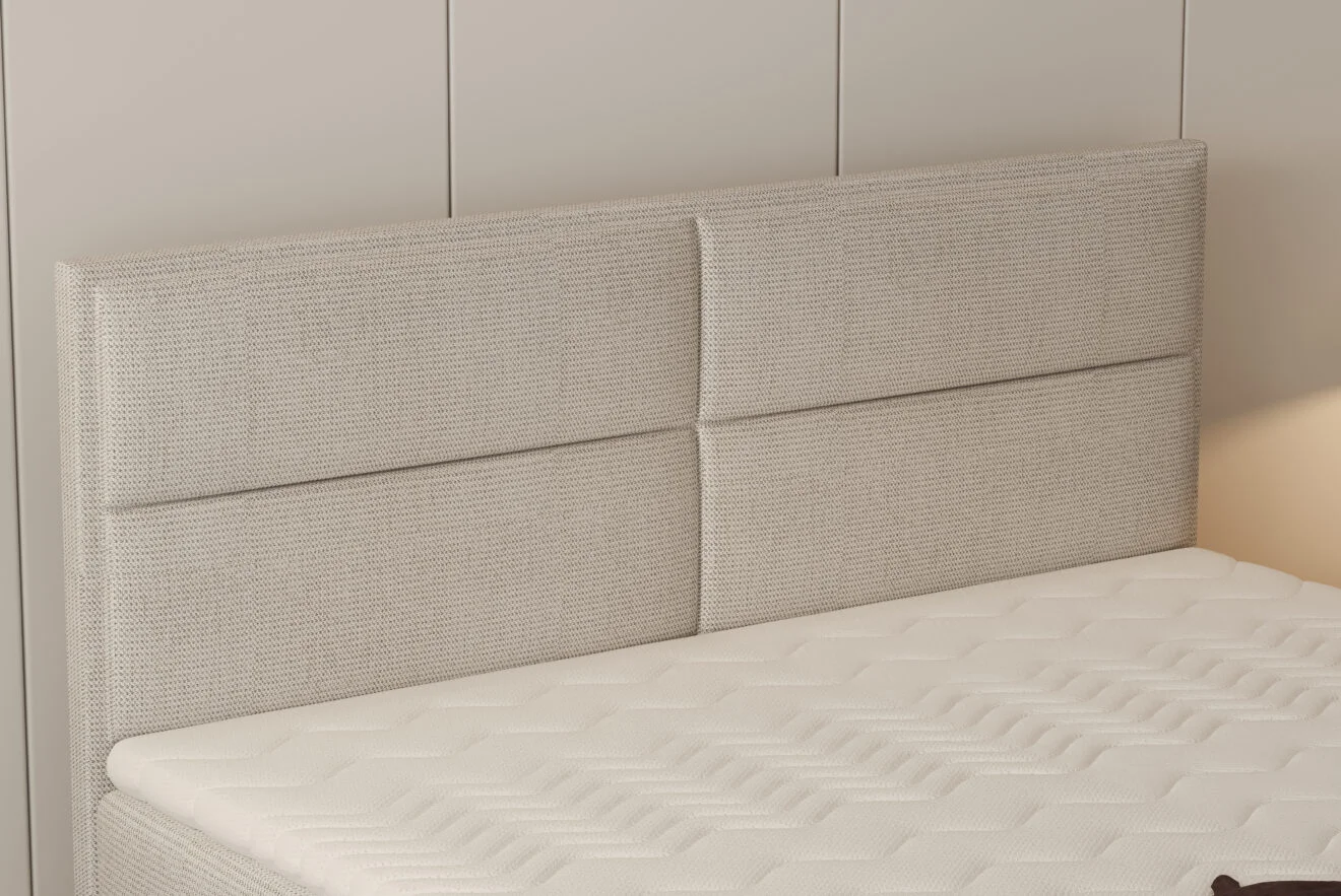 The WILSON bed is a refined combination of elegance and modern design, created to elevate the look and feel of any bedroom. Its distinctive headboard, divided into four panels, adds a contemporary touch while maintaining a sophisticated aesthetic.